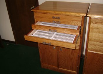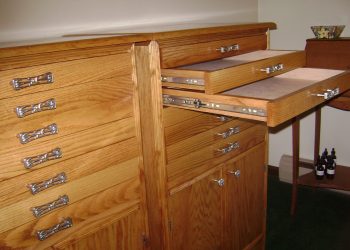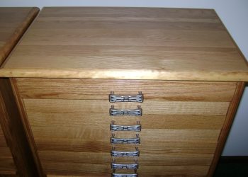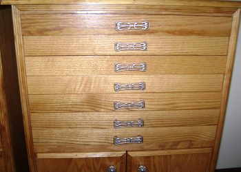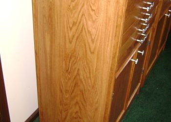 Below you will see a custom made – oak chest that was made for a holistic healer to hold her bottles. The drawers are 1 3/4 inch high and 14 inches deep, 20 inches wide. The drawers are on steel ball bearing rollers. The bottom has doors, for a more sleek look.
